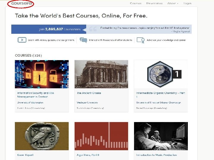 Еще. Из ответов на ЧАВО и статей n n Смогу ли я получить кредит университете для принятия этого курса? Вы не получите кредит с наших университетов-партнеров. Тем не менее, некоторые студенты, которые в настоящее время обучаются в других университетах были в состоянии получить кредит на этих курсах за свой университет (иногда в виде отдельных единиц исследования). Если вы в настоящее время обучаются студентом, вы можете проверить с вашим университетом, чтобы увидеть, если это вариант. На прошлой неделе, Антиохийский Университет объявил о своем намерении, чтобы позволить студентам взять кредит содержащие курсы, основанные на некоторых курсах по Coursera. До сих пор онлайн-курсов были использованы в первую очередь в одном из двух способов: как MOOCs (некредитных несущих классы открыты для всех), так и в академических учреждениях производству этих классов, для поддержки «перевернутый классе» моделью для своих зарегистрированных студентов. Модель Антиохии отражает Третья парадигма, в которой одно учреждение использует курсы, разработанные другими в качестве основы для кредитных составляющих программы. В этой модели онлайн-контента, как правило, "завернутый" с некоторыми лицом-к-лицу классе время местных инструкторов, которые могут облегчить обсуждение, ответы на вопросы, убедитесь, что студенты делают успехи, и, возможно, увеличить ход с дополнительным содержанием и / или оценки.