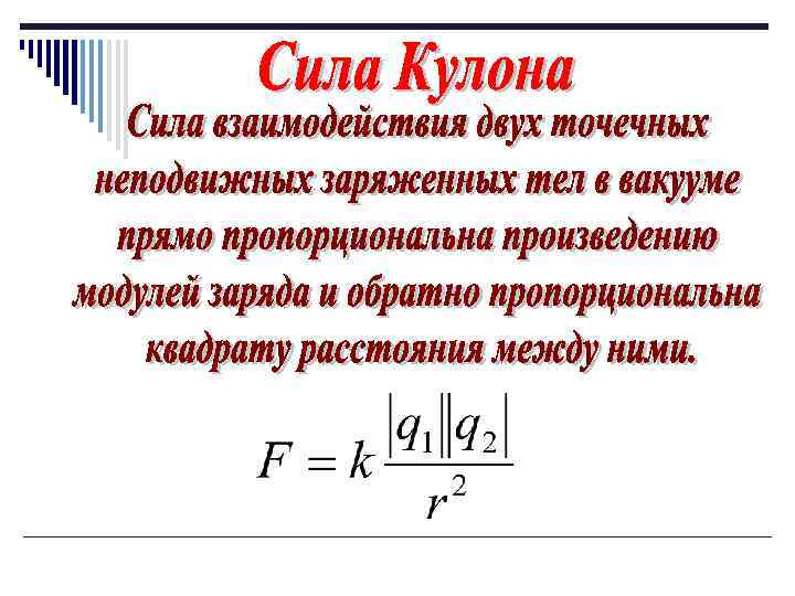 4. Закон Кулона – закон о силе взаимодейсвия двух заряженных тел В 1785 году французским ученым Кулоном были получены результаты опытов по измерению силы взаимодействия двух точечных зарядов.
