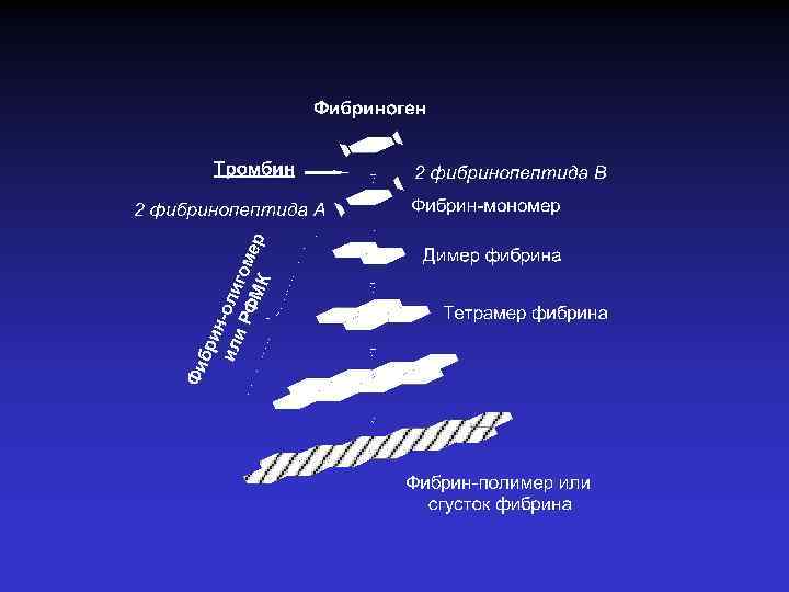 Маркеры тромбинемии • • • Фибринопептид А D-димер Фрагменты протромбина 1+2 Комплекс тромбин-антитромбин III Растворимый фибрин (РФМК) Фибрин-мономер