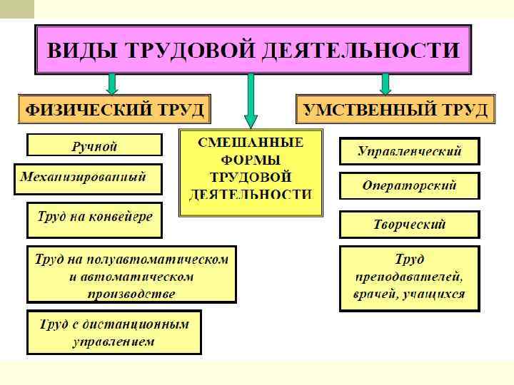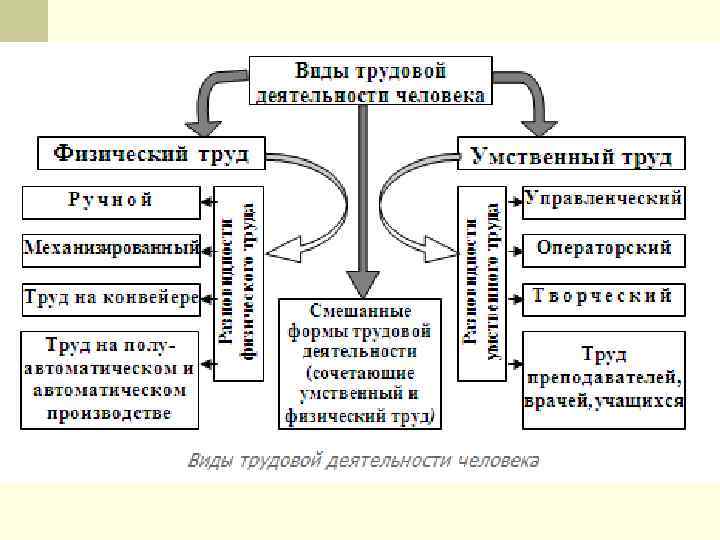 Классификация форм труда n Классификация труда по тяжести производится по мощности производимой работы с учетом вида нагрузок (статические или динамические), нагружаемых мышц.