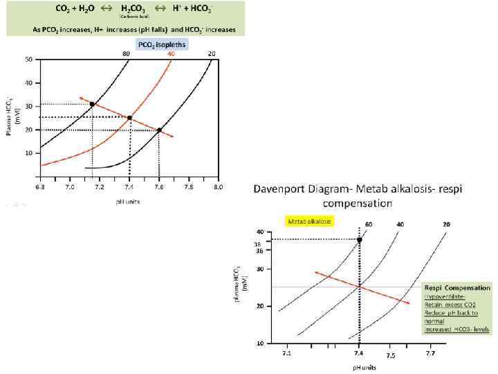 СДВИГ р. Н плазмы Ацидоз Алкалоз Респираторный Метабо- Респираторный лический ↓вентиляции легких ↓ НСОз- ↑ р. СО 2 в крови →↑ Н+ Компенсация ↑ НСОз- ↑ Н+ Компенсация ↓ р. СО 2 ↑ вентиляции легких, горы ↓ р. СО 2 в крови → ↓Н+ Компенсация ↓ НСОз- Метаболический ↑ НСОз- ↓ Н+ Компенсация ↑ р. СО 2