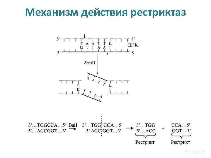 Рестриктазы {рестрицирующие эндонуклеазы, эндонуклеазы рестрикции} • это ферменты, узнающие и атакующие определенные последовательности нуклеотидов в молекуле ДНК (сайты рестрикции). Тема № 2