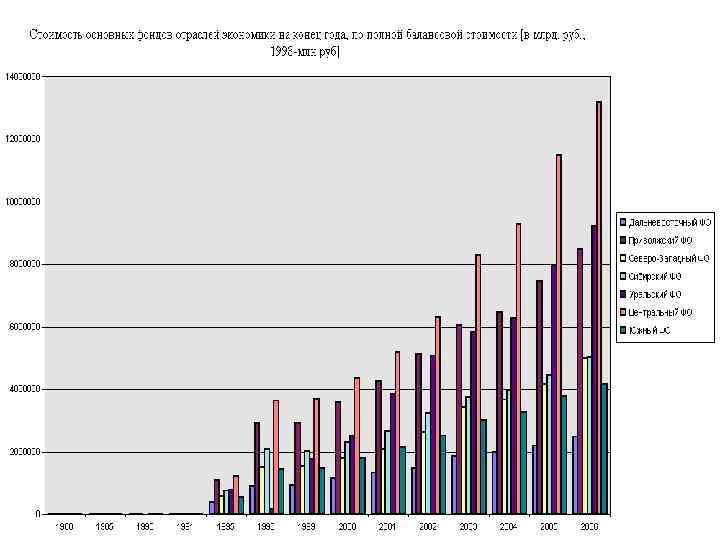 До кризиса 2008 года в России наблюдался серьезный рост валового регионального продукта в ряде регионов, наиболее благоприятная ситуация в Центральном, Приволжском и Уральском федеральных округах, Южный и Дальневосточный федеральные округа замыкают таблицу Валовой региональный продукт млн. руб, 2005 г.