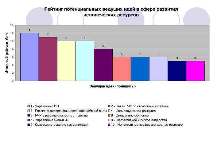 РЫЧАГ УПРАВЛЕНИЯ ПРОЦЕССОМ ИНТЕЛЛЕКТУАЛИЗАЦИИ ПЕРСОНАЛА: МЕРЫ УПРАВЛЯЮЩЕГО ВОЗДЕЙСТВИЯ ХР(T) Меры организационно-экономического характера Меры морально-психологического характера - разработка стратегии и политики управления интеллектуальным потенциалом персонала; - контроллинг интеллектуального потенциала персонала предприятия; - поддержание взаимосвязи с внешними источниками привлечения кадров; - поиск источников финансирования формирования и развития интеллектуального потенциала персонала; - создание гибкой системы вознаграждения, ориентированной на достижение высоких результатов интеллектуально-инновационной деятельности; - соответствующее нормирование и тарификация трудового процесса; - разработка показателей и правил оценки результатов интеллектуального труда; - организация переподготовки и повышения квалификации сотрудников; - формирование кадрового резерва на выдвижение и резерва руководителей; - отбор на вакантные должности; - планирование деловой карьеры сотрудников; - создание и ведение информационного банка данных о качественном и количественном составе высококвалифицированных кадров; - обеспечение оптимального режима труда и отдыха работников интеллектуального труда; - информационное и техническое обеспечение процесса управления интеллектуальным потенциалом персонала; - обеспечение персонала научно-технической информацией, организация патентно-лицензионной деятельности. - внедрение методики справедливой оценки результатов интеллектуального труда работников; - вовлечение высококвалифицированных специалистов в процесс управления производством; - анализ и регулирование групповых и межличностных отношений в творческом коллективе работников; - разрешение конфликтов; социально-психологическая диагностика персонала, формирование и управление инновационной культурой в организации; - разработка форм морального поощрения работников интеллектуального труда; - развитие социальной инфраструктуры на предприятии; - проведение корпоративных мероприятий.
