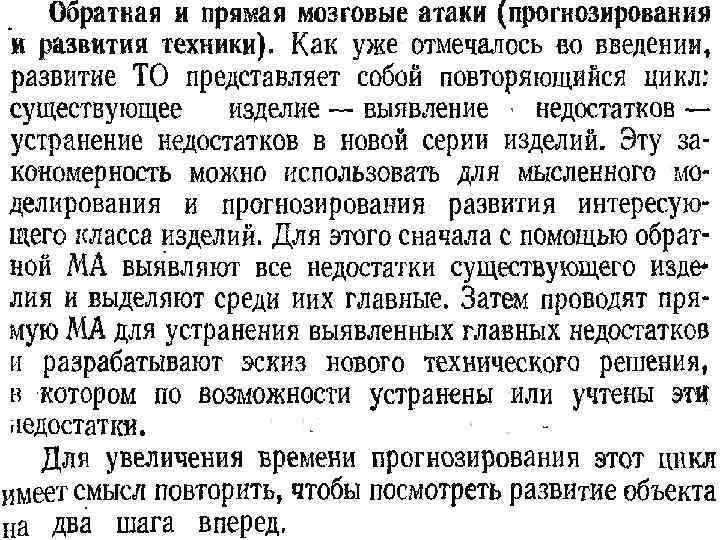 Законы развития технических систем Во вторую группу входят законы: увеличения степени идеальности (см. прим. ) —в этом направлении идет развитие всех систем; неравномерности развития частей (это, в частности, является причиной возникновения технических противоречий в системе); перехода в надсистему — исчерпав возможности развития, система включается в надсистему в качестве одной из частей, и дальнейшее развитие идет на новом уровне. К третьей группе относится, например: закон перехода с макроуровня на микроуровень—рабочие органы системы развиваются сначала на макро , а затем на микро уровне (вместо «железок» работа осуществляется молекулами, атомами, ионами, электронами и т. д. ). Прим. : Идеальность (одно из базовых понятий в ТРИЗ) — это максимальный показатель эффективности системы с точки зрения : её функции, затрат ресуров для выполнения этой функции и побочных эффектов использования системы. Если попытаться решить, как улучшить что либо (то есть увеличить идеальность системы), то возможные пути для этого: увеличить достоинства системы или уменьшить её стоимость или уменьшить негативные последствия от неё.