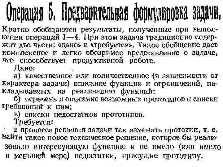Постановка задачи инженерного творчества • 1. Предварительная постановка задачи. Требуется улучшить прототип, внеся в него определенные изменения. Задачи инженерного творчества решаются итерационным путем, т. е. делается несколько приближений к искомому решению. Постановка задачи имеет два этапа: а) предварительная постановка задачи (5 операций); б) уточненная постановка задачи (7 операций).