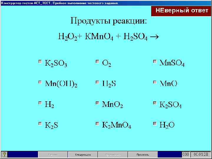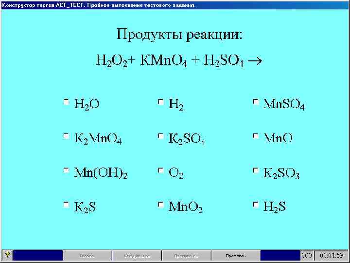 Выбор нескольких вариантов Проверка умения определять продукты химических реакций