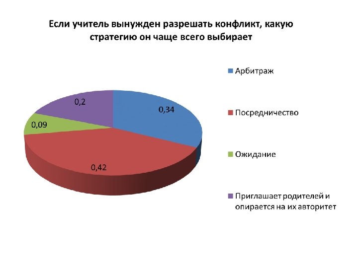 74% опрошенных педагогов признают • наличие в коллективе «людей, провоцирующих конфликты» . • Только 7% педагогов и 18% детей считают, что в школе нет людей, провоцирующих конфликты. • Более 50% опрошенных педагогов считают: для того, чтобы конфликты не мешали работе, руководитель должен быть: «объективным, лояльным, прислушиваться к педагогам, понимать их индивидуальность, уметь слушать всех, не вставать ни на чью сторону, разбираться в ситуации до конца и т. п. »