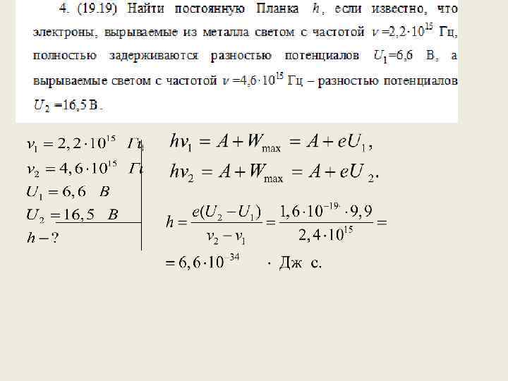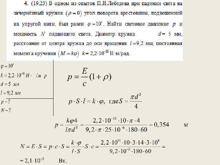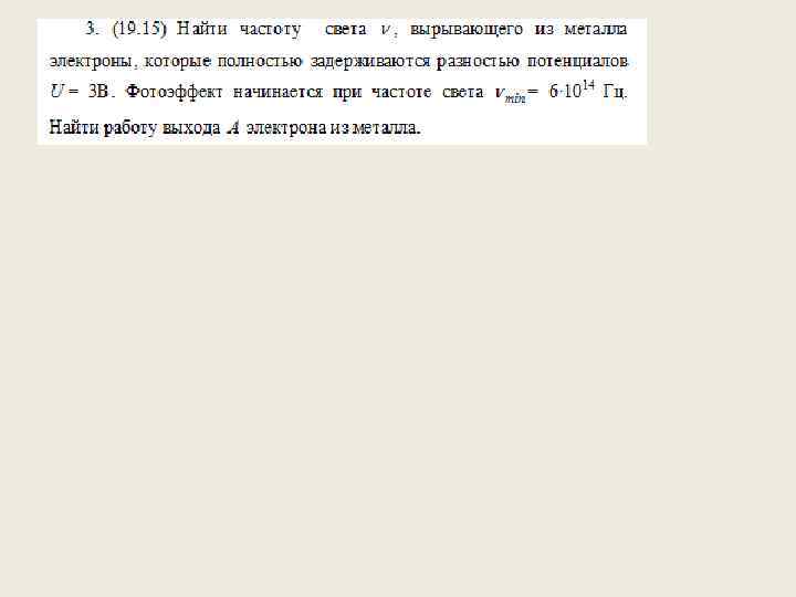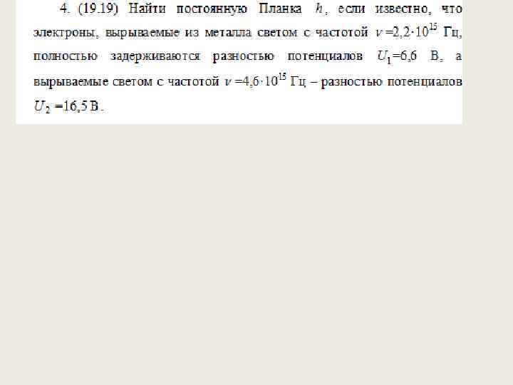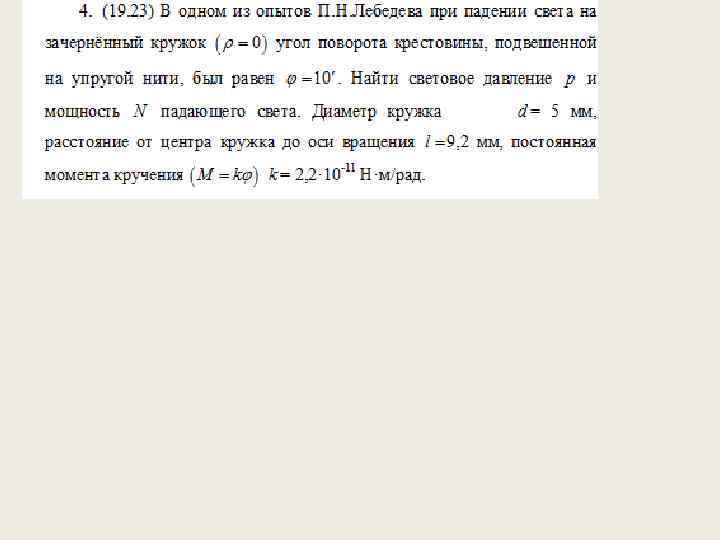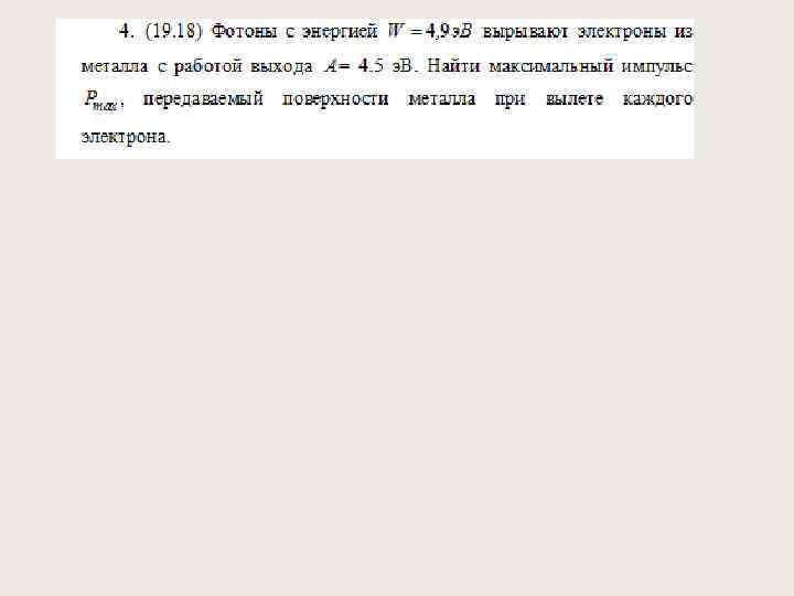 Практическое занятие 4 а • • • СОДЕРЖАНИЕ ТЕОРИИ Энергия, импульс, масса фотона. Фотоэффект и его закономерности. Давление света. ОСНОВНЫЕ ФОРМУЛЫ ДЛЯ РЕШЕНИЯ ЗАДАЧ 1. Энергия фотона где λ -длина волны, с -скорость света в вакууме, h -постоянная Планка , ν -частота света, ω -циклическая частота. 2. Импульс фотона где -волновой вектор (волновое число).