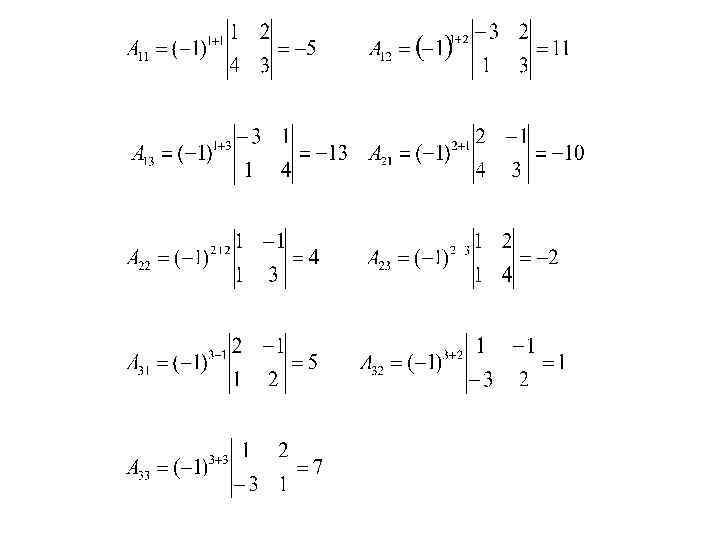 Опр. 4. Алгебраическим дополнением элемента аij матрицы n-го порядка А называется число, равное (-1)i+j. Mij и обозначаемое символом Аij: Аij = (-1)i+j. Mij где i=1, 2, … n; j=1, 2, …, n. Алгебраическое дополнение совпадает с минором, когда сумма номеров строки и столбца – четное число, и отличается от минора знаком, когда сумма номеров строки и столбца – нечетное число.