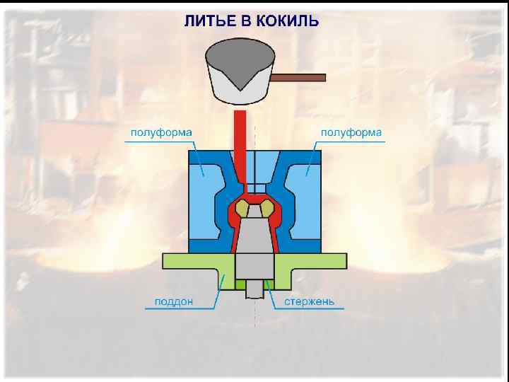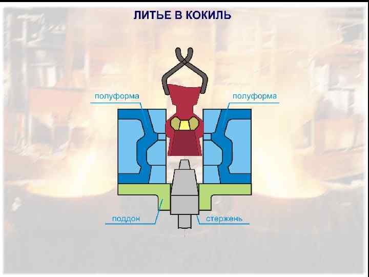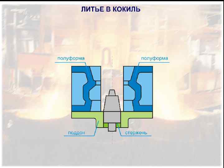 ИЗГОТОВЛЕНИЕ ОТЛИВОК В ПОСТОЯННЫХ (МЕТАЛЛИЧЕСКИХ) ФОРМАХ Металлические формы выдерживают многократную заливку и резко повышают производительность труда; при этом отпадает необходимость использование формовочных смесей, упрощается решение проблемы автоматизации процесса и повышается качество отливок (точность, состояние поверхности и др. ). литье в кокиль, литье под давлением и центробежное литье.