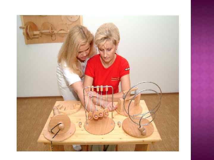 Задачи эрготерапевта o Обучение пациента навыкам самообслуживания o Обучение навыкам повседневной жизни o Развитие мелкой моторики Средства эрготерапии способствуют восстановлению физической работоспособности, оказывают благоприятное психологическое воздействие на больного.