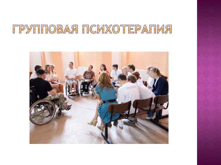 Необходимость применения психотерапии в процессе реабилитации обусловлена: Неизбежностью возникновения в процессе длительно развивающегося заболевания повреждений психоэмоциональной сферы пациента (кризы, депрессии, неврозы). В структуру заболевания при его развитии вовлекаются механизмы высшей нервной деятельности(психо-вегетативные расстройства). Психотерапия – это эффективный инструмент вовлечения в процесс реабилитации самого пациента, активное участие которого крайне необходимо для формирования механизмов самореабилитации в социальном и профессиональном плане.