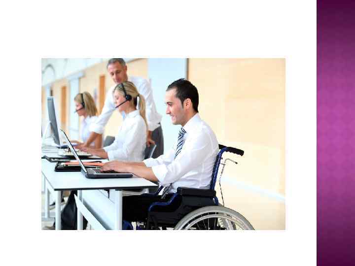 Профориентация Психологическая коррекция Обучение (переобучение) Создание специального рабочего места инвалида Профессионально-производственная адаптация