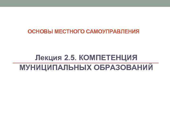 ОСНОВЫ МЕСТНОГО САМОУПРАВЛЕНИЯ Лекция 2. 5. КОМПЕТЕНЦИЯ МУНИЦИПАЛЬНЫХ ОБРАЗОВАНИЙ