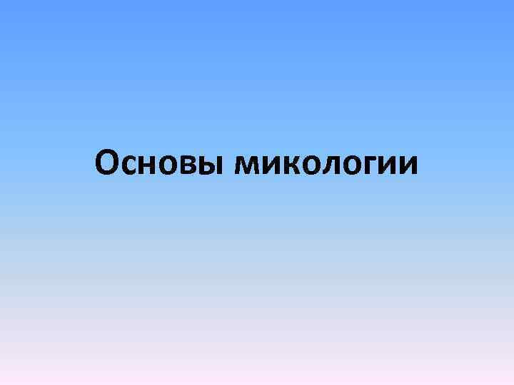 Основы микологии
