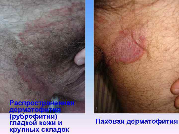 Распространенная дерматофития (руброфития) гладкой кожи и крупных складок Паховая дерматофития