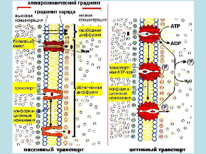Транспорт веществ Непосредственный (без белков-переносчиков) Опосредованный (с белками-переносчиками) Транспорт веществ Пассивный (без затрат энергии) Активный (с затратами энергии) Пассивный Непосредственный Опосредованный Активный Физическая (пассивная диффузия) Облегченная диффузия и Активный транспорт Обменная диффузия