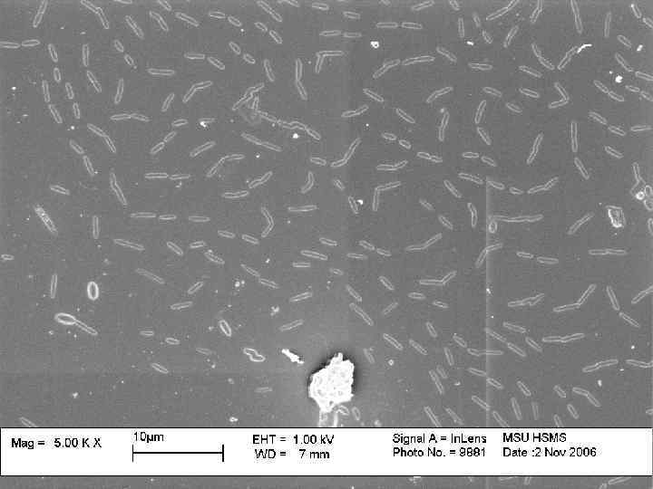 Вирусы табачной мозаики. Длина частицы - 300 нм.
