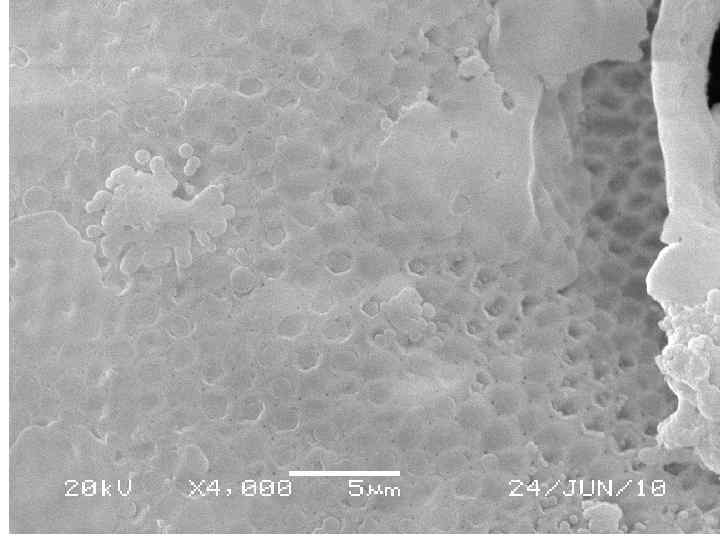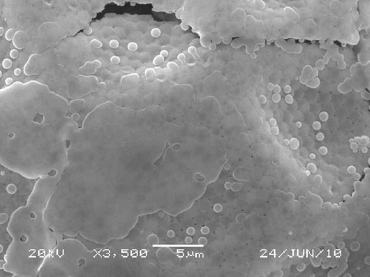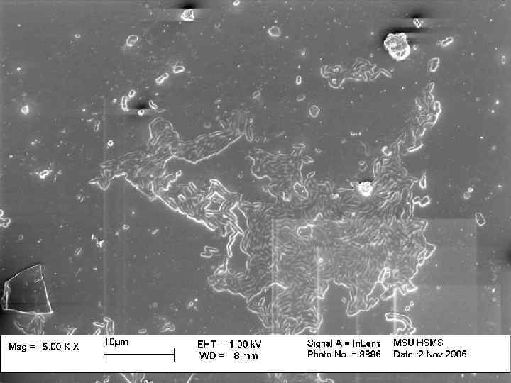 Гелевая пленка на подложке слюды, выделяющаяся из почвенных агрегатов дерново-подзолистой почвы. Увеличении 500×.