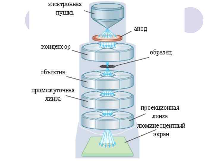 Электронный микроскоп расширил предел разрешения от длины световой волны до атомных размеров, а точнее до межплоскостных расстояний – величин порядка 0, 15 нм. Первые попытки сфокусировать пучок электронов при помощи электростатических и электромагнитных линз были сделаны в 20 -х годах XX века. Первый электронный микроскоп был создан в 30 -х годах. Это был просвечивающий микроскоп и предназначался для изучения порошков, тонких пленок и срезов.