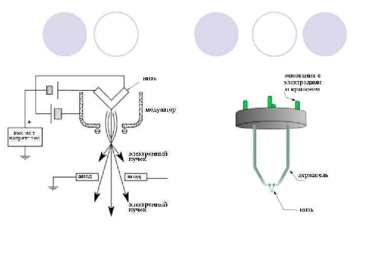 Источником электронов в РЭМ является эмиттер электронов с отрицательным потенциалом (обычно 3 -30 к. В), который ускоряет электроны в направлении образца. Большинство широко известных эмиттеров представляют собой вольфрамовую нить накаливания (диаметром около 0, 1 мм), изогнутую в форме шпильки для волос и приваренную к ножкам, смонтированным на изоляторе. Нить нагревается током примерно до 2700 К; тогда электроны получают достаточно тепловой энергии, чтобы преодолеть потенциальный барьер поверхности. Сетка, или «венельт» имеет отрицательный потенциал относительно катода и ограничивает эффективную площадь эмиссии областью вблизи вершины катода. Анод представляет собой заземленную пластину с апертурой для прохождения пучка.