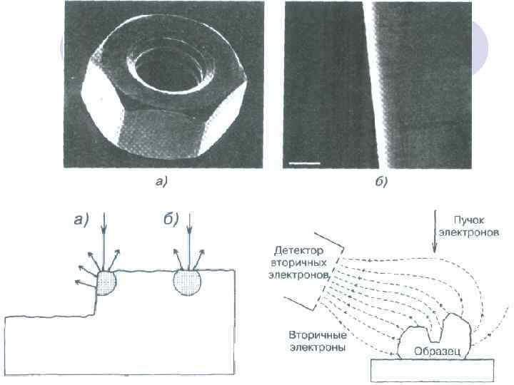 Тонкие детали, воспроизводимые вторичными электронами, образованными непосредственно пучком, накладываются на относительно нерезкое изображение, формируемое вторичными электронами, образованными обратно рассеянными электронами (эффект можно уменьшить, используя низкое ускоряющее напряжение, которое уменьшает область, образуемую вторичными электронами, создаваемых обратно рассеянными электронами). Однако при больших увеличениях образованные BSE вторичные электроны дают вклад в интенсивность фона, сравнимый со вторичными электронами, производимыми первичным пучком.