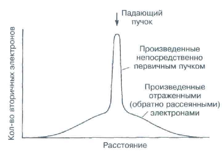 Вторичные электроны образуются в результате электронной бомбардировки материала и отличаются от обратно рассеянных электронов гораздо более низкой энергией, в среднем только несколько электрон-вольт. Некоторые из вторичных электронов производятся первичными электронами в момент их вхождения в образец, а остальные – обратно рассеянными электронами при выходе из образца. Коэффициент выхода вторичных электронов, определяется как число вторичных электронов на падающий электрон. Его значение находится примерно между 0, 1 и 0, 2.