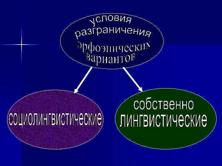 Собственно лингвистические условия появления орфоэпических вариантов 1) тенденция к унификации места ударения: фенóмен феномéн, ср. : спортсмéн, бизнесмéн, яхтсмéн; n 2) тенденция к экономии языковых усилий: [те]рмин [т’е]рмин, [jиеш’ó] [иеш’ó]. n