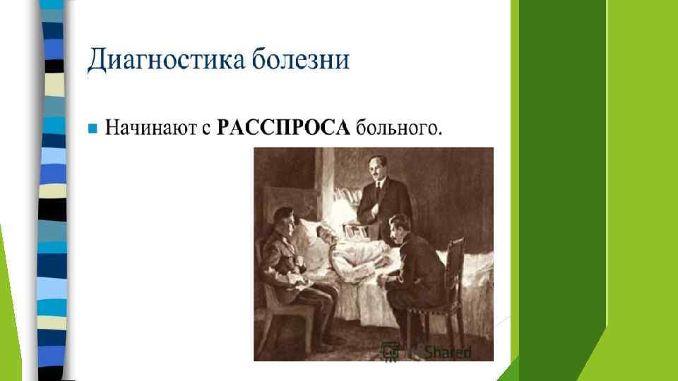 Субъективные методы исследования: Объективный метод – это осмотр пациента. Осмотр проводится по определенному плану: -общий осмотр; -осмотр определенных систем. Методы обследования: -основные; -дополнительные.