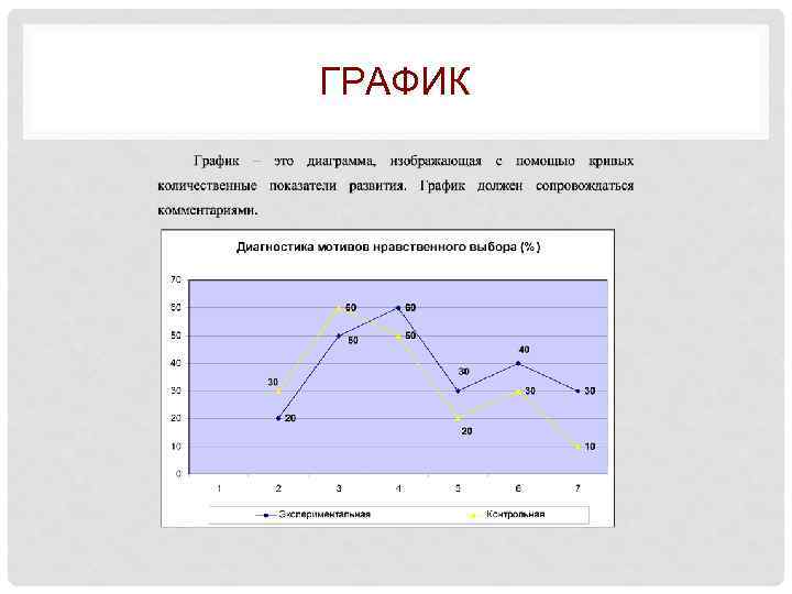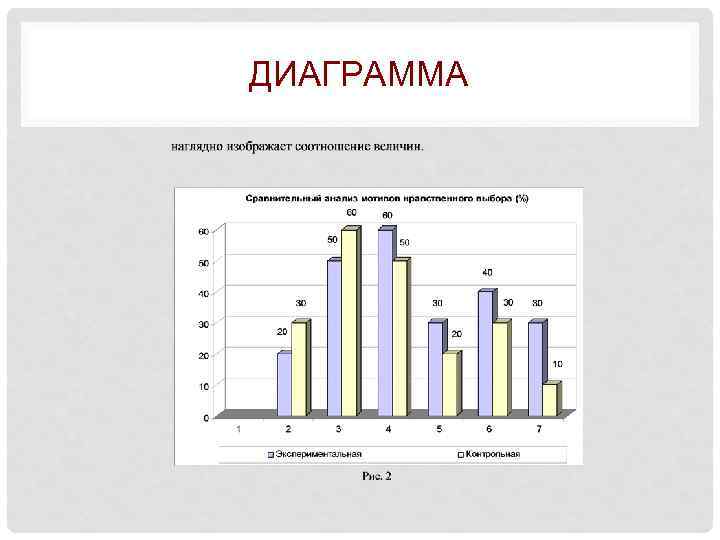 ВТОРОЙ ПАРАГРАФ ВТОРОЙ ГЛАВЫ Посвящен анализу результатов опытно экспериментальной работы. Сопоставление и сравнение исходных данных и полученных результатов и составляют содержание второго параграфа. Количественный и качественный анализ результатов исследования должен быть исчерпывающим, развернутым и завершенным, т. е. с представлением выводов и практических рекомендаций. Если в работе используется 2 3 методики, то целесообразно провести анализ результатов по каждой методике, а затем дать сводную характеристику полученных результатов. Требования к проведению педагогического эксперимента предполагают наличие контрольной и экспериментальной групп, выборки испытуемых той и другой группы должны быть однородными по всем диагностическим показателям.