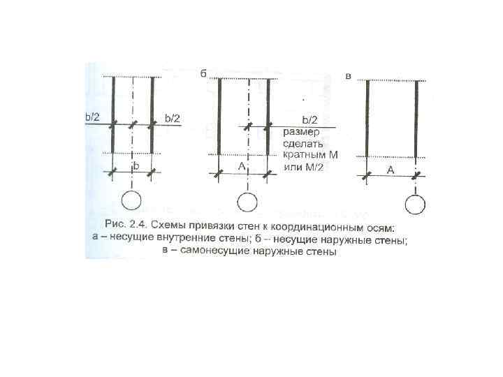 Правила привязки Разбивочные оси и привязка к ним вертикальных конструкций здания а – привязка к осям стен (здание с несущими стенами); б – привязка к осям колонн (здание каркасное с навесными или самонесущими стенами)