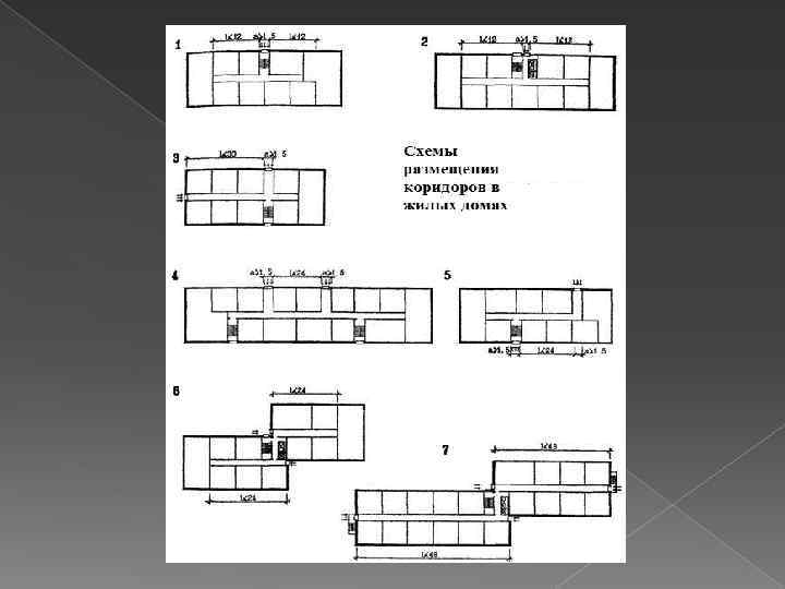 2. 4 Безлифтовые галерейные, коридорные жилые дома Объёмно-планировочное решение – развитая горизонтальная коммуникация (галерея или коридор), с помощью которого квартиры соединяются с лестницей. Отличаются простой конструктивной схемой. Коридорные дома Дома коридорного типа для создания санитарно-гигиенических условий должны иметь коридоры соответствующей ширины, освещённости и проветриваемости. Минимальная ширина 1. 4 метра при длине здания до 40 метров и 1. 6 метров при длине здания больше 40 метров. Коридоры обязательно должны иметь естественное освещение. При длине здания больше 40 метров делаются дополнительные световые карманы. Недостатки коридорных домов: 1. 2. 3. Недостаточная изоляция жилых помещений от коридора Ограниченная ориентация Отсутствие сквозного проветривания