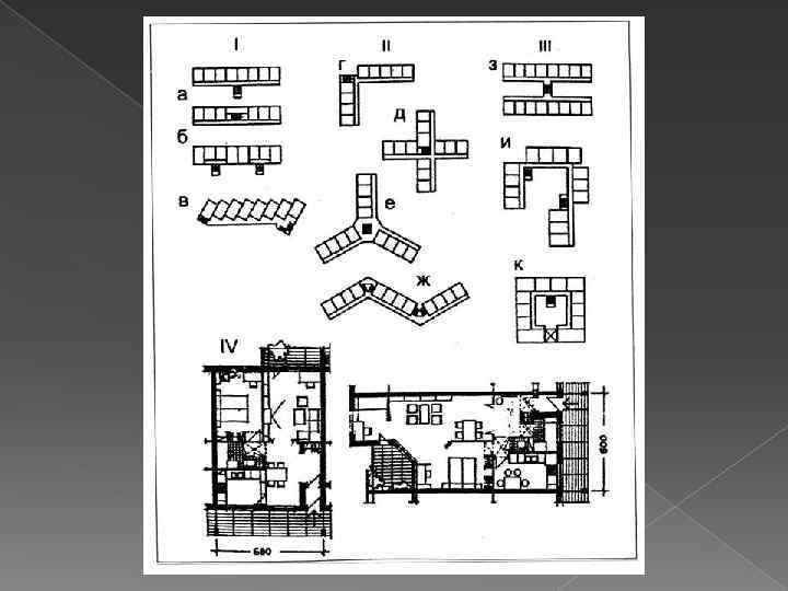 2. 3 Безлифтовые секционные жилые дома Виды секций По ориентации - широтные - меридиональные - ограниченной ориентации По расположению в плане - рядовые - торцевые - поворотные (угол поворота 90 и 135 ) При застройке блокированными домами для разнообразия силуэта и создания композиционных акцентов применяют односекционные жилые дома, которые отличаются ориентацией жилья на все стороны горизонта и увеличенным периметром наружных стен. Приёмы застройки Основной элемент застройки – жилая группа, которая может иметь разные пространственные формы, в том числе объединяться в кварталы и жилые образования. Жилые группы могут располагаться вдоль улиц, вокруг тупиковых и кольцевых проездов, а так же быть замкнутыми или открытыми. Наиболее распространённый тип – объединение в жилой комплекс. Секционные дома могут составлять фоновую застройку или быть акцентом, при этом имеет значение разноэтажность этих секций.