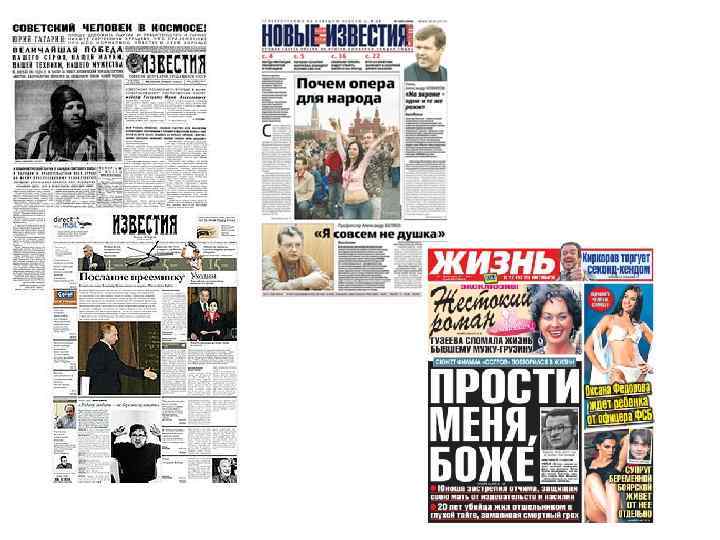 Тип издания Характеристики Цель Основные функции Главные темы Целевая аудитория Обществ. полит. ( «Российская газета» , «Новая газета» , «Завтра» , «Известия» ) информировать о происходящих событиях, формировать общественное мнение относительно деятельности правительства и различных политических партий информативная, идеологическая, манипулятивная политика, экономика, социальная проблематика, образование, культура читатели со сформировавшейся жизненной позицией, интересующиеся вопросами политики и перспективами развития страны Деловые ( «Континент Сибирь» , «Деловой квартал» , «Эксперт» ) информировать о событиях, происходящих в сфере экономики и бизнеса; представлять прогноз экспертов информативная экономика, бизнес, политика (события, влияющие на развитие бизнеса), образование подготовленный читатель, являющийся специалистом в сфере экономики и бизнесиндустрии Просветительские ( «Культура» , «Литературная газета» , «Искусство кино» , «Журналист» ) формирование мировоззрения и нравственной составляющей личности, расширение кругозора и профессиональных знаний образовательная, обучающая, воспитательная, эстетическая образование, профессиональная сфера (в зависимости от тематики издания), культура интеллигентный читатель, занимающийся самообразованием и саморазвитием Развлекател. ( «Жизнь» , «Комсомольск. правда» , «Отдохни!» ) организовать досуг (занять, развлечь читателя) аттрактивная, рекреативная происшествия, катастрофы, личная жизнь публичных и обычных людей (скандалы, расследования, сенсации), досуг (праздники, кино, отдых), здоровье, мода массовая, широкая аудитория Рекламные ( «От и до» , «Выбирай» , «Ваша работа» ) информировать о товаре (услуге), сформировать желание его приобрести (не окупать) рекламная, антирекламная продукты, промышленные товары, одежда, работа, отдых, услуги массовая аудитория или ограниченная сфера читателей, интересующихся определенным набором товаров (услуг)
