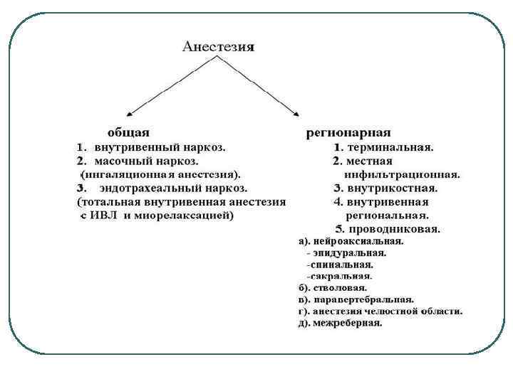 l Прерывание рефлекторных дуг, связанных с болевой импульсацией на уровне головного мозга, реализуется в процессе общего обезболивания, вариант которого с полным отключением сознания называется наркозом