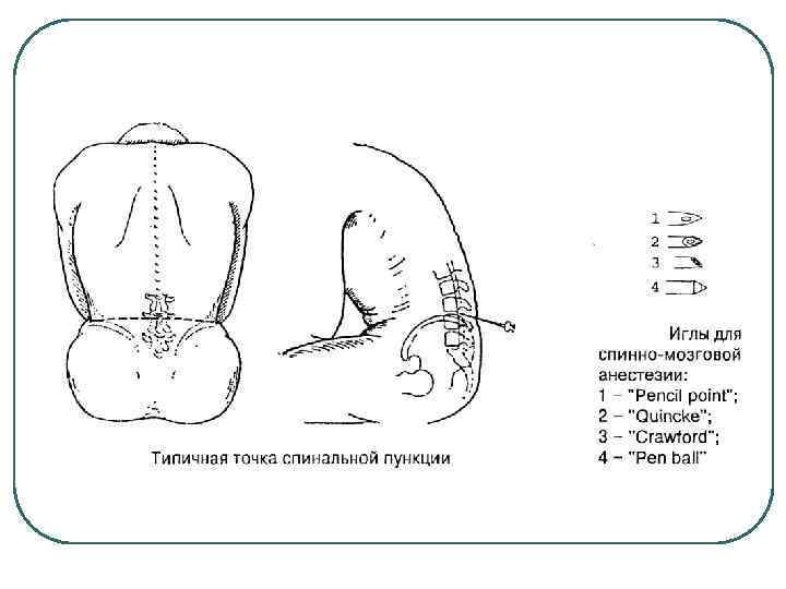 Спинальные иглы. В них вставляется мандрен, чтобы ткани не застревали в отверстии иглы и не заносились в субдуральное пространство.
