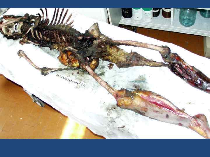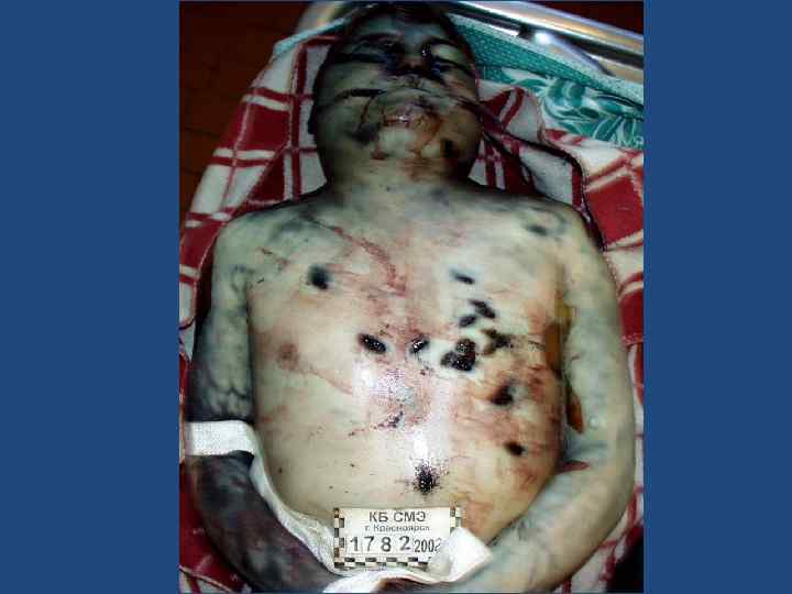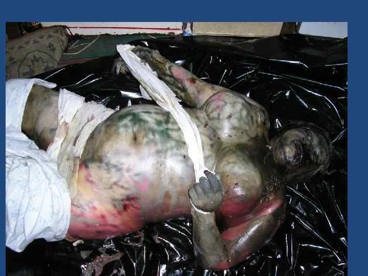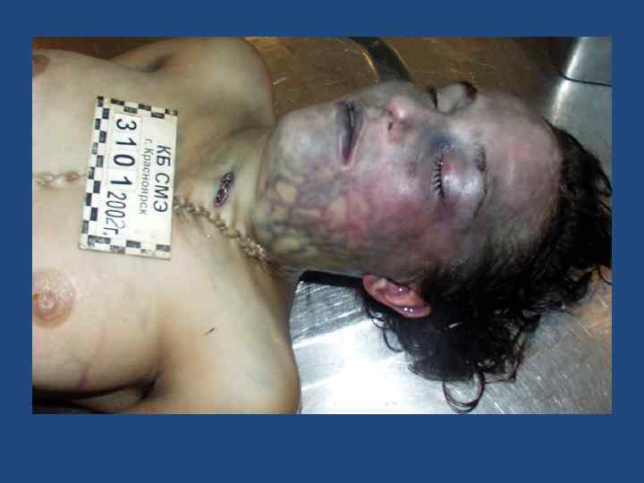 Алгоритм установления давности наступления смерти • • • наличие и состояние одежды, соответствие ее времени года (погодным условиям); наличие в карманах одежды датированных документов (справок, газет и пр. ); фиксация того, что находится: на трупе (снег, количество слоев снега, листва и пр. ); под трупом (сухое или влажное ложе трупа, наличие наста, состояние травы, явления этиолизации, порастание останков травой, кустарником и пр. ); наличие и степень выраженности суправитальных реакций; наличие и степень выраженности трупных явлений; забор материала для лабораторных исследований (например, отпечатки с роговиц); исследование трупа в морге с использованием гистологических, биохимических и других лабораторных методов, рекомендованных для установления постмортального периода; анализ материалов дела - «Протокола осмотра места происшествия» , или «Протокола осмотра трупа на месте его обнаружения» , свидетельских показаний и пр. ; составление экспертного вывода о давности наступления смерти.