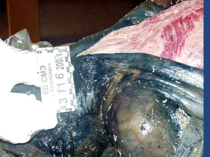 Определенное экспертное значение для установления давности наступления смерти имеет энтомологическое исследование насекомых, обнаруженных на трупе, особенно мух. так, среднестатистические сроки яйцекладки мух происходят на 1 3 сутки, хотя первые признаки этого можно отметить уже в первые часы. появление яйцекладки и личинок происходит на 3 5 сутки. преобладание личинок отмечается в срок от 5 суток до 2, 5 недель, при этом личинки имеют длину 1, 5 см, толщину 0, 3 0, 4 см уже на 2 неделе); обнаружение куколок – пупариев возможно в конце 2 недели посмертного периода, а появление взрослых особей на 2 0 3 0 сутки (при 15 2 0 градусах), на 15 2 0 сутки (при 2 0 25 градусах), на 9 15 сутки (при 25 3 0 градусах).