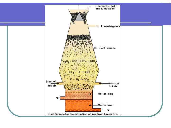 Доменный газ l l Доменный газ образуется в процессе выплавки чугуна в доменных печах. Химический состав (%): 20 -30 СО; 1 -4 Н 2; 0, 5 СН 4; 55 -58 N 2; 12 -20 СО 2. Теплота сгорания 3, 6 -4, 6 МДж/м 3. l При обогащении дутья кислородом содержание азота в газе снижается и соответственно этому возрастает количество других газов (в том числе окислы углерода и водорода), теплота сгорания при этом увеличивается. l