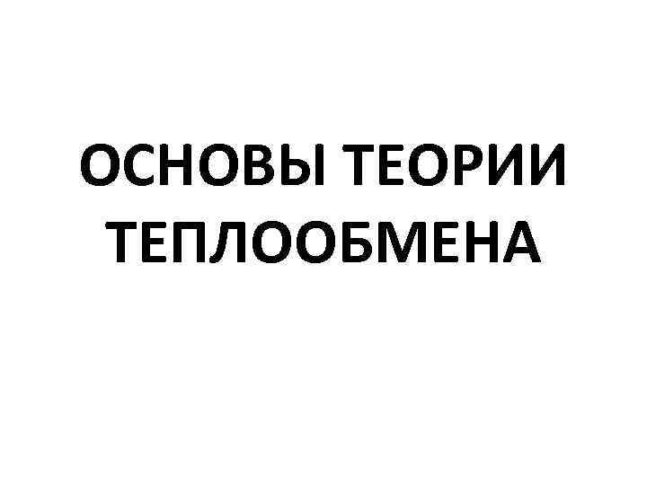 ОСНОВЫ ТЕОРИИ ТЕПЛООБМЕНА