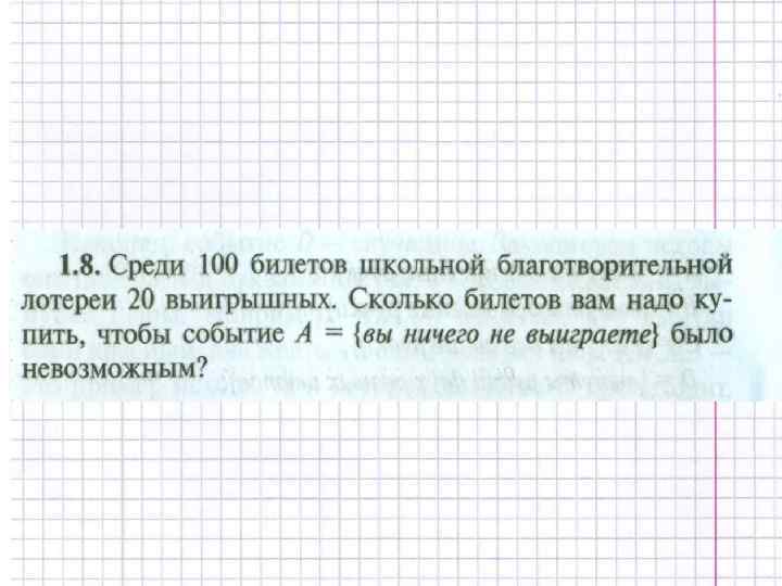 Определение: Достоверным назовем событие которое обязательно произойдет при выполнении определенного количества условий. Определение: Невозможным назовем событие которое не происходит при выполнении определенного количества условий. 1)При бросании игральной кости выпала цифра 7. 2)При бросании игральной кости выпала цифра 5. ЗАДАНИЕ 1 ЗАДАНИЕ 2