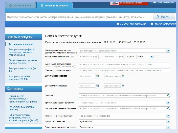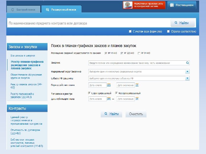 Законодательство - Федеральный закон № 44 -ФЗ от 5 апреля 2013 г. «О контрактной системе…» - Федеральный закон № 223 -ФЗ от 18. 07. 2011 г. «О закупках товаров, работ, услуг отдельными видами юридических лиц» - Федеральный закон № 135 -ФЗ от 26 июля 2006 г. «О защите конкуренции» - Гражданский кодекс РФ - Бюджетный кодекс РФ