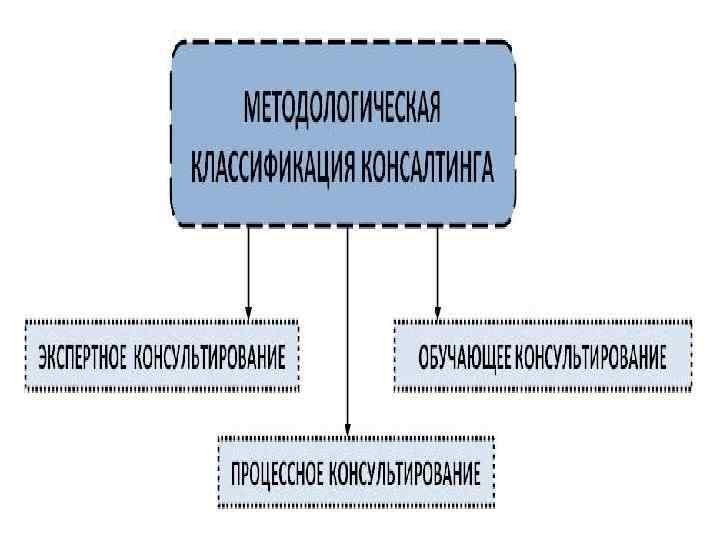 Классификация консалтинга: • • • по предмету: продуктовое, процессное, по масштабу: стратегическое, тактическое, оперативное, по численности консультантов, по масштабу клиента, по отношению консультанта к организации: внешние и внутренние, по применяемым методам: экспертное, процессное, обучающее, проектное, по основным целям: управление изменениями, антикризисное, антирисковая. . . , по отраслям клиента, по количеству объекту, по географическому расположению клиента, по степени радикальности: радикальное, улучшающее.
