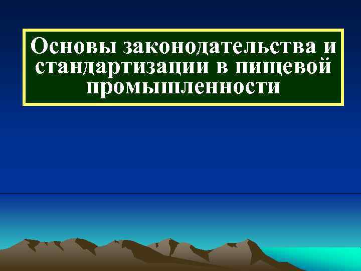 Основы законодательства и стандартизации в пищевой промышленности