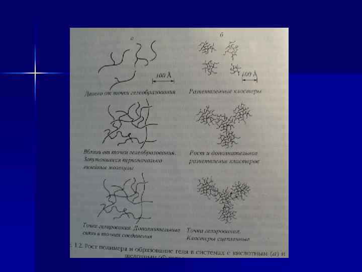 n n Гелеобразование обусловлено возникновением в объеме жидкой системы молекулярной сетки или каркаса взаимосвязанных полимерных цепочек микронного размера и субмикронных пор. Процесс гелеобразования лишает систему текучести и придает ей некоторые свойства твердого тела: прочность, хрупкость и др. Гель представляет, таким образом, промежуточное состояние вещества между твердым и жидким, так называемое жидкообразное твердое состояние Энциклопедия полимеров. – М. : Советская энциклопедия. – 1972. – Т. 1. – 1224 с. Айлер Р. Химия кремнезема: Пер. с англ. – М. : Мир. – 1982. – Т. 1. – 516 с.