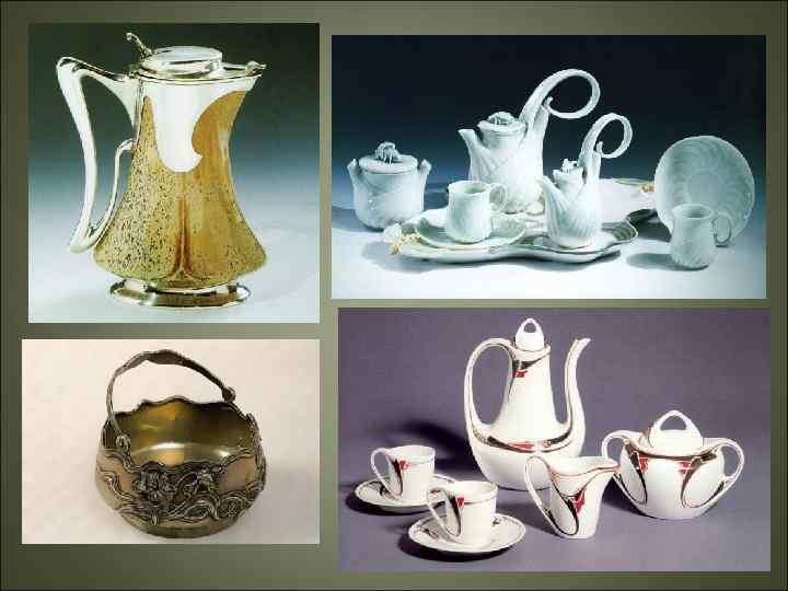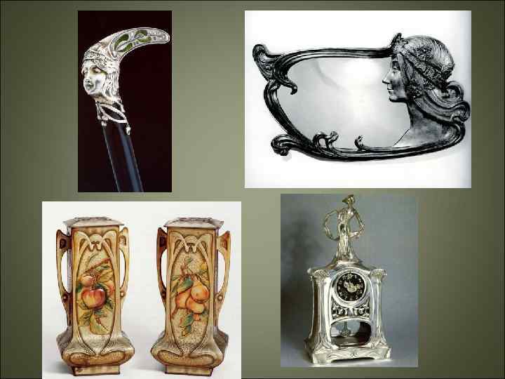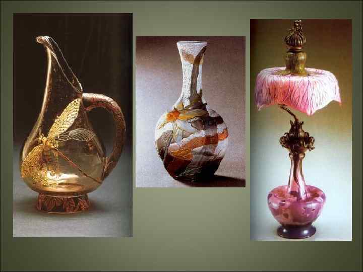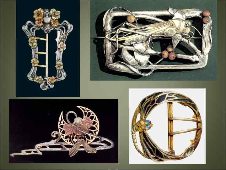 • Прекрасно поддавались стилизации яркие и грациозные насекомые и птицы - стрекозы и бабочки, павлины и ласточки. Природная декоративность модерна способствовала его применению в разных жанрах.