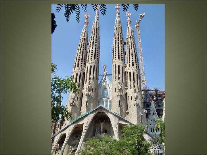 Собор Саграда Фамилия Барселона • Храм Святого семейства — пожалуй, самая значительная из работ Гауди, к сожалению, так и не законченная. Стиль, в котором выполнен собор, отдаленно напоминает готику, но вместе с тем, это что-то совсем новое, современное. Здание собора рассчитано на хор из 1500 певцов, детский хор из 700 человек и 5 органов. Храм должен был превратиться в центр католической религии. С самого начала строительство храма поддерживал Папа Леон XIII.