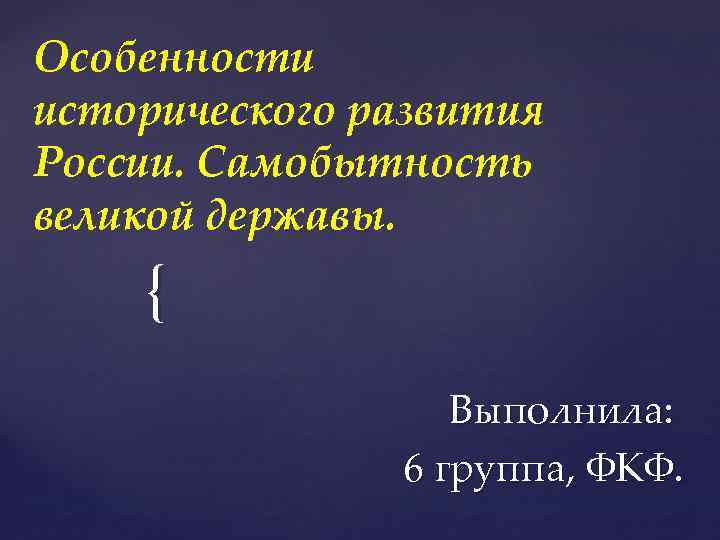 Особенности исторического развития России. Самобытность великой державы. { Выполнила: 6 группа, ФКФ.