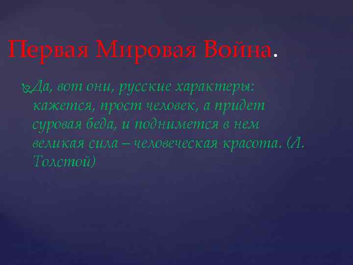 Первая Мировая Война. Да, вот они, русские характеры: кажется, прост человек, а придет суровая беда, и поднимется в нем великая сила – человеческая красота. (Л. Толстой)